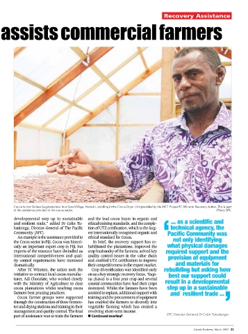 the Cocoa sector in Fiji. Cocoa was histori- In brief, the recovery support has re-