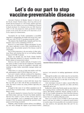 moa shows us that we must not get complacent. Vaccination Associate Professor El-Shadan Tautolo