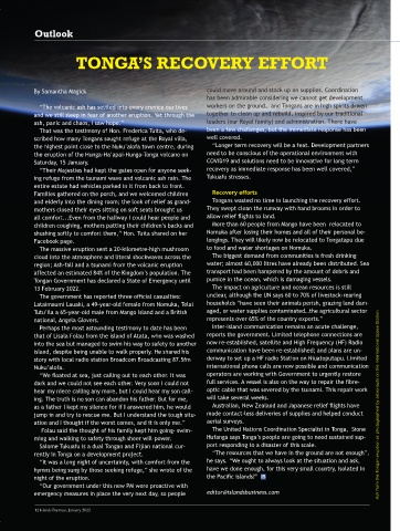 ming and walking to safety through sheer will-power. Hufanga says Tonga’s people are going to need sustained sup-