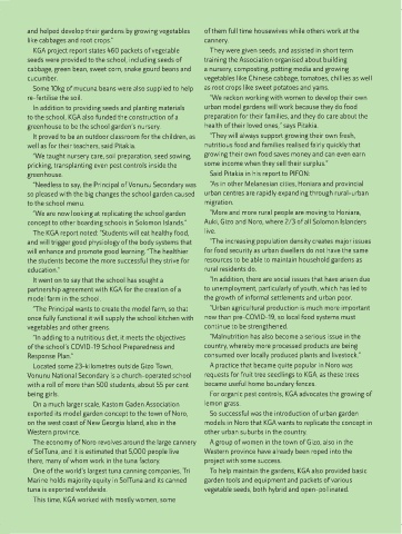 cannery town of Noro, where women have been able to “Working with their senior students, we provided seeds This time, KGA worked with mostly women, some