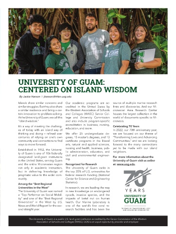 CONNECT WITH THE UNIVERSITY OF GUAM The University of Guam is a public U.S. land-grant ond straight year. search facilities and has been the